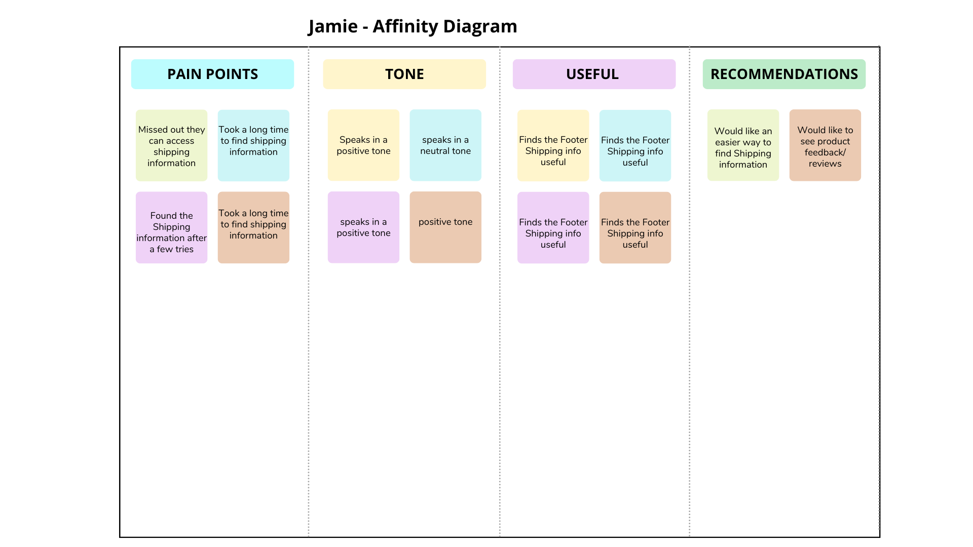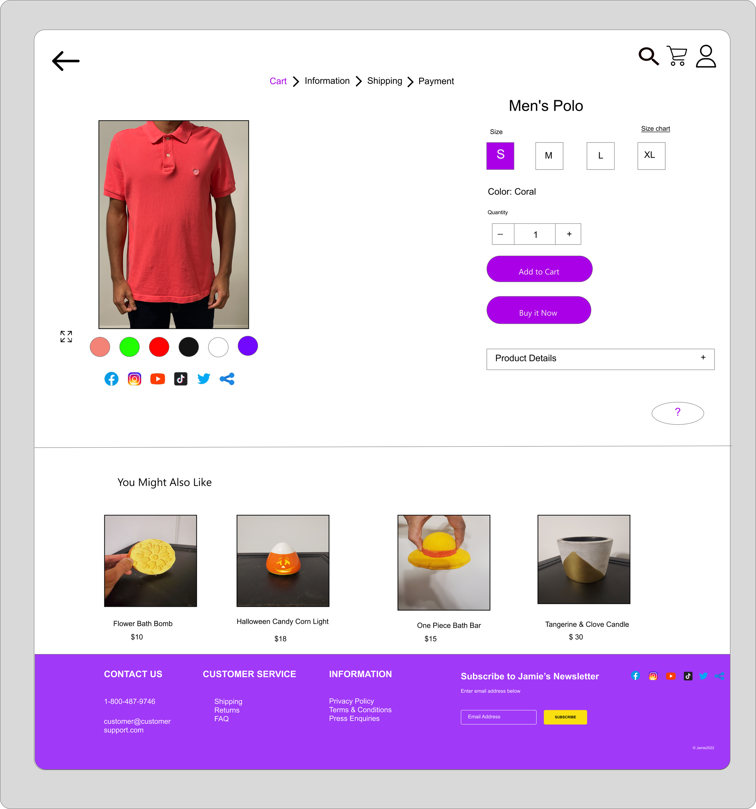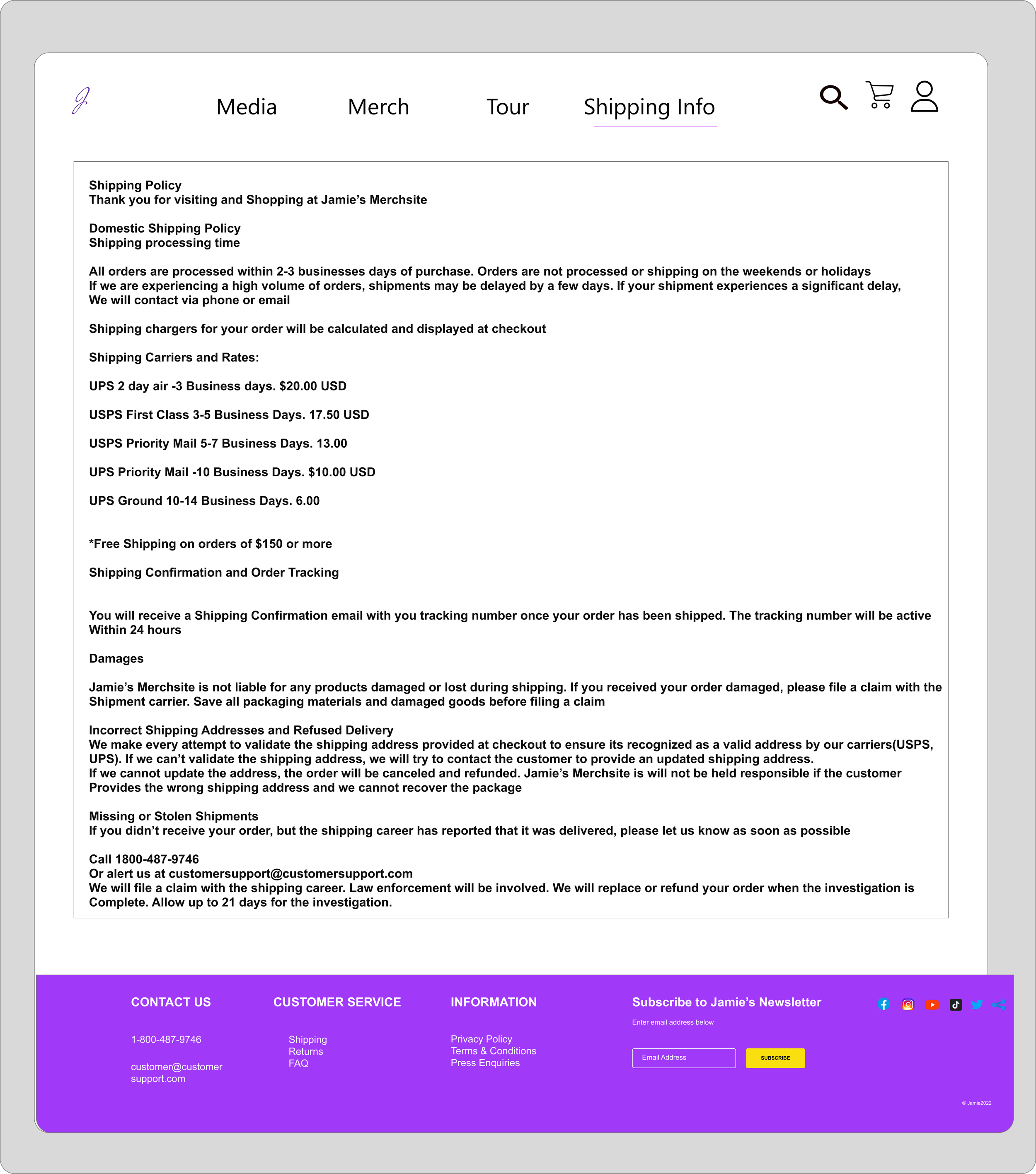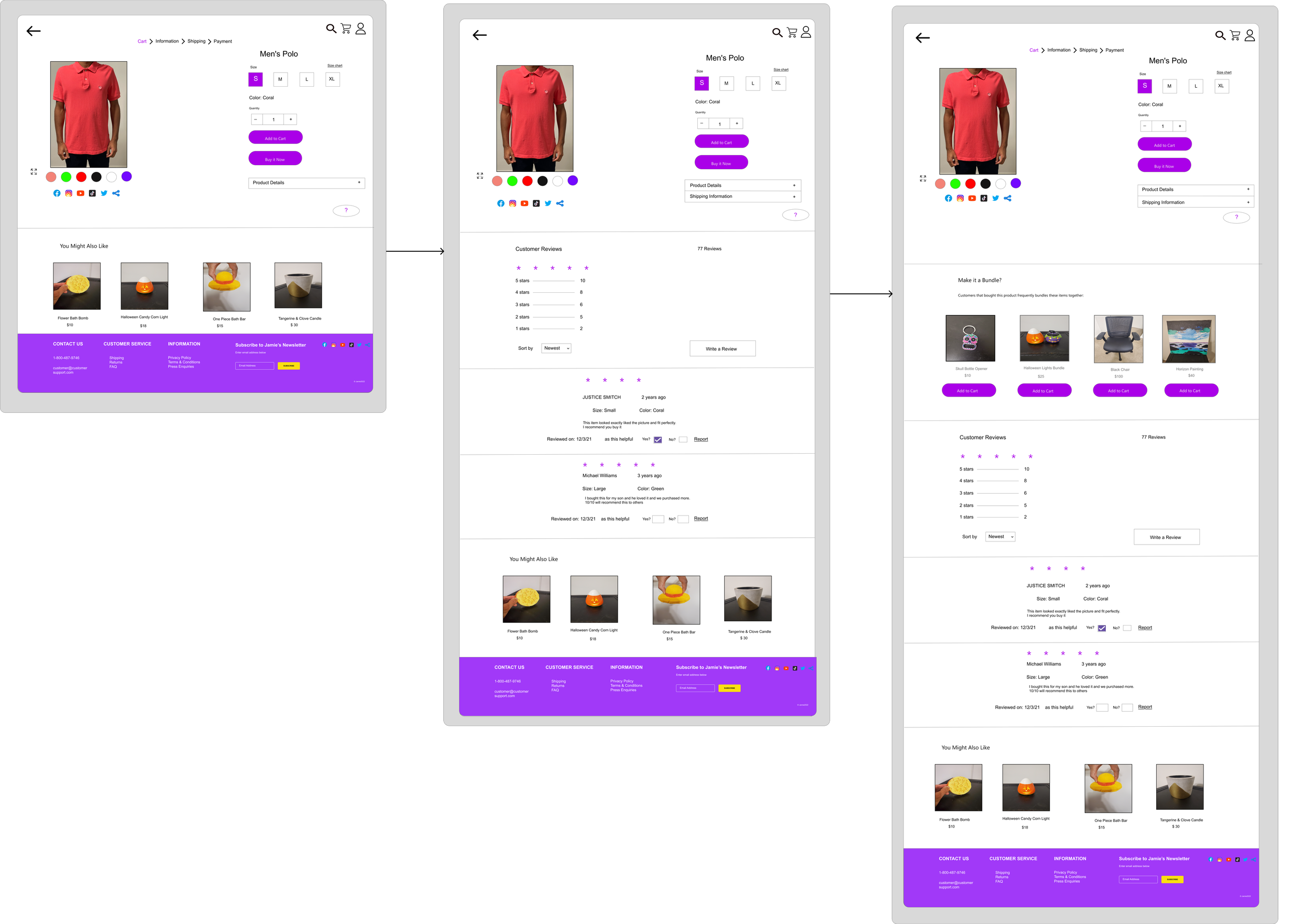 After = Our usuablility study revealed that it was tough for users to find information about shipping. We asked ourselves “Does the shipping label only need to be found at the footer of the page? This led us to put the shipping information right underneath the product details and to build out a whole page for it