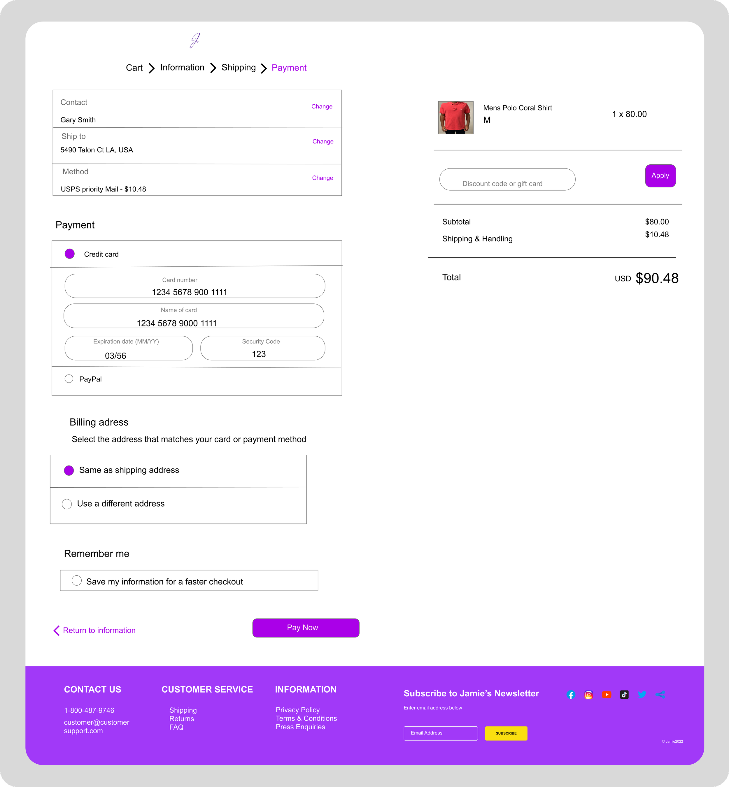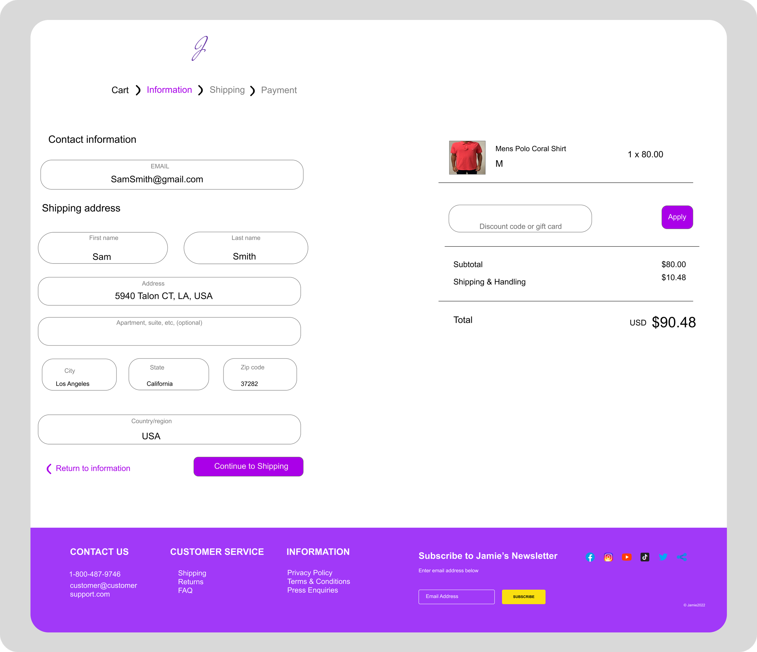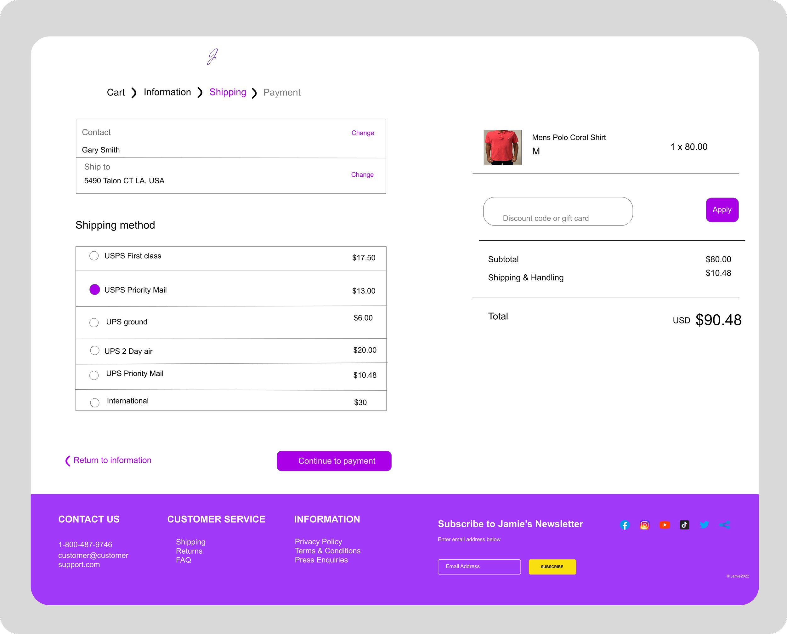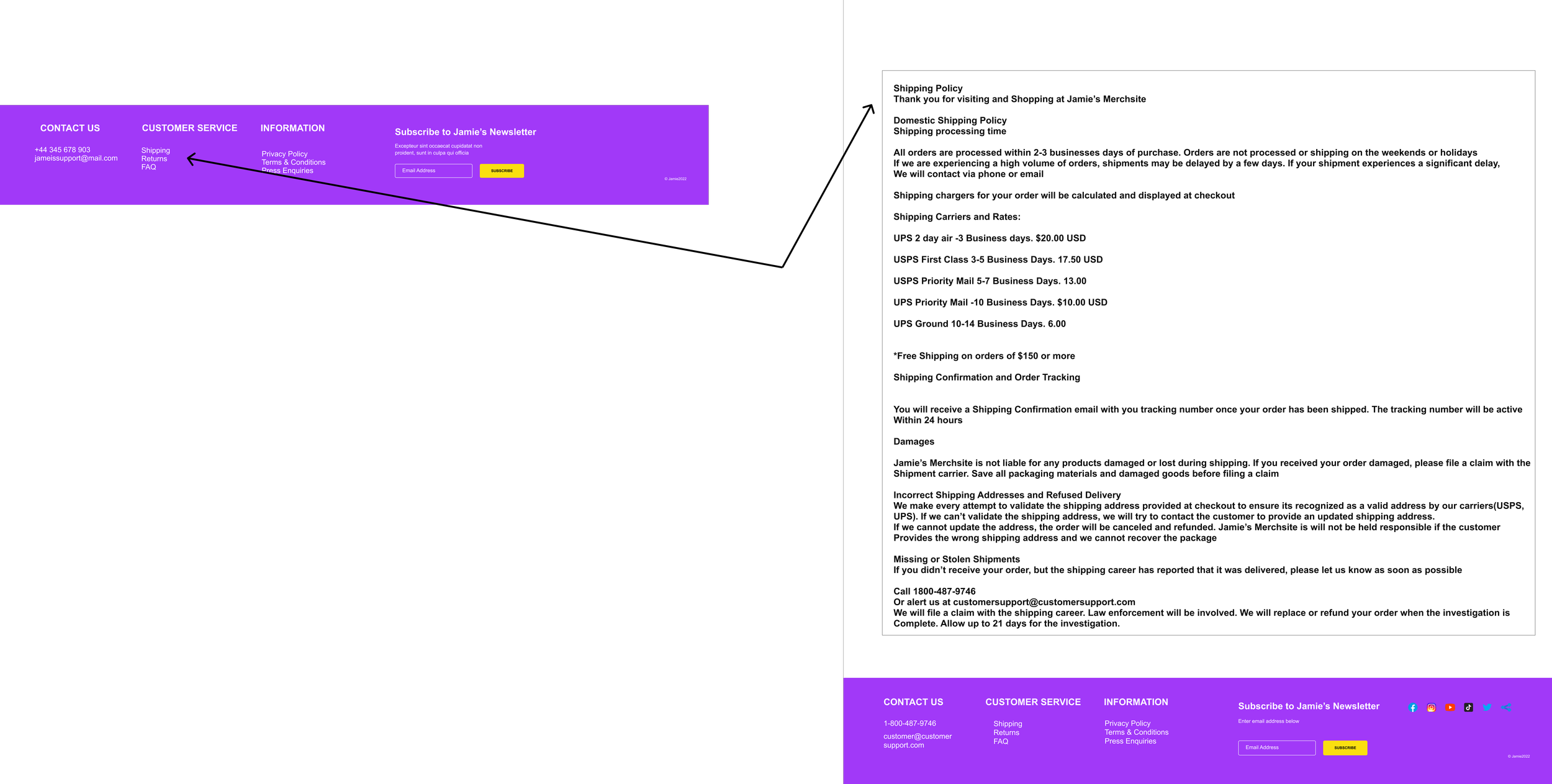 Our initial designs had shipping information at the footer of the page and then this would link you to the information.