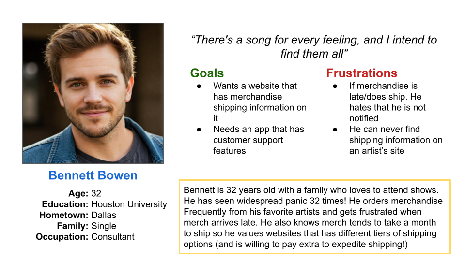How might we create an app for an up and coming artist that allows you to customize the merchandise, displays the different shipping tiers and provides customer support?