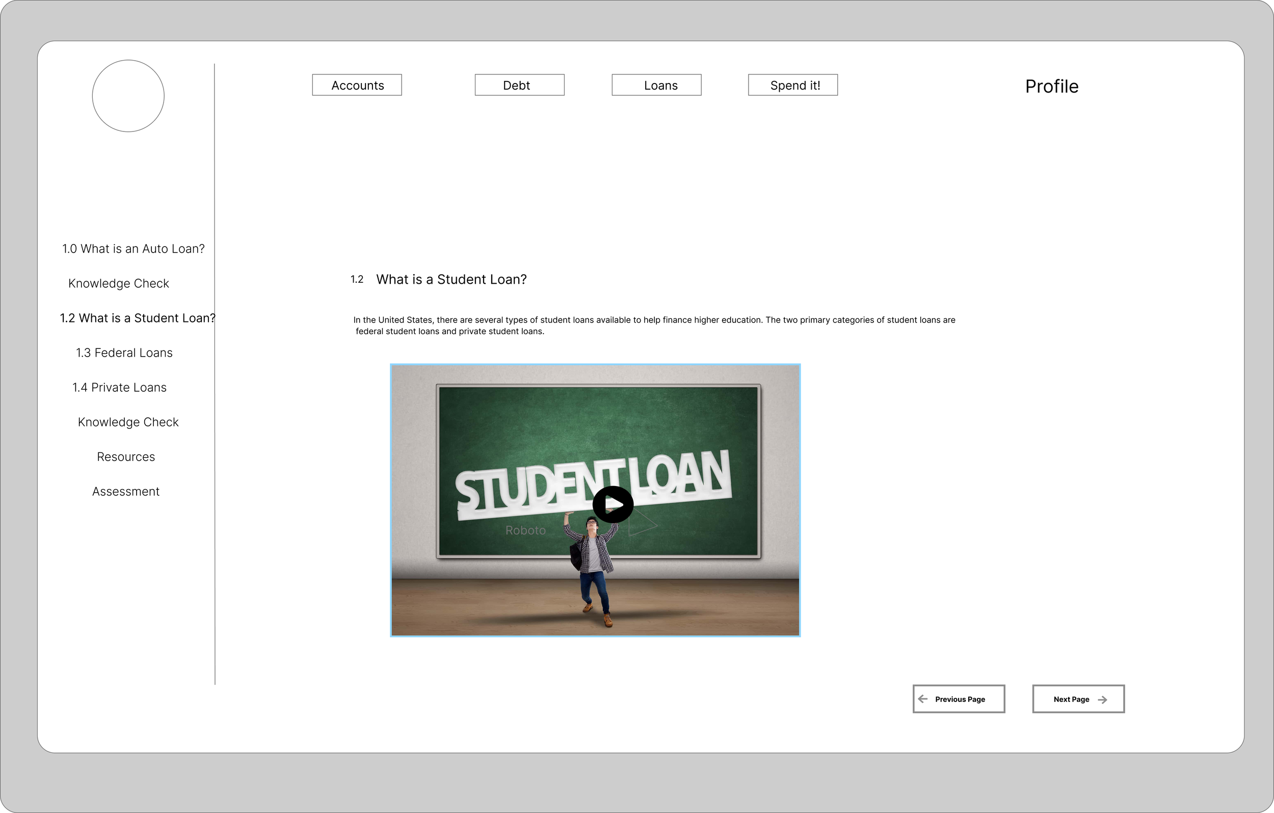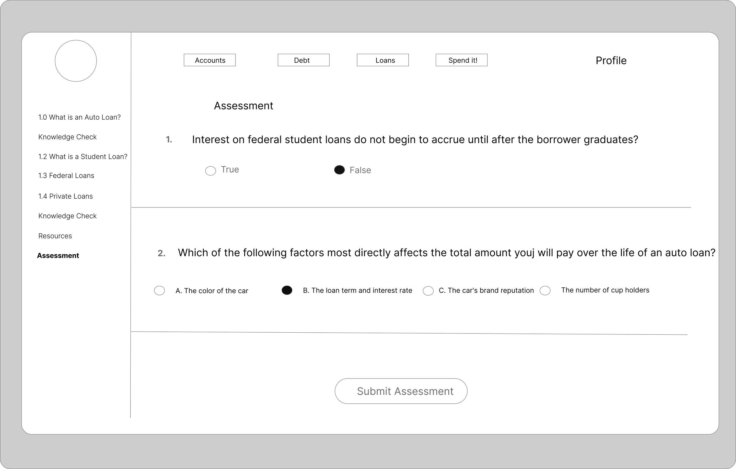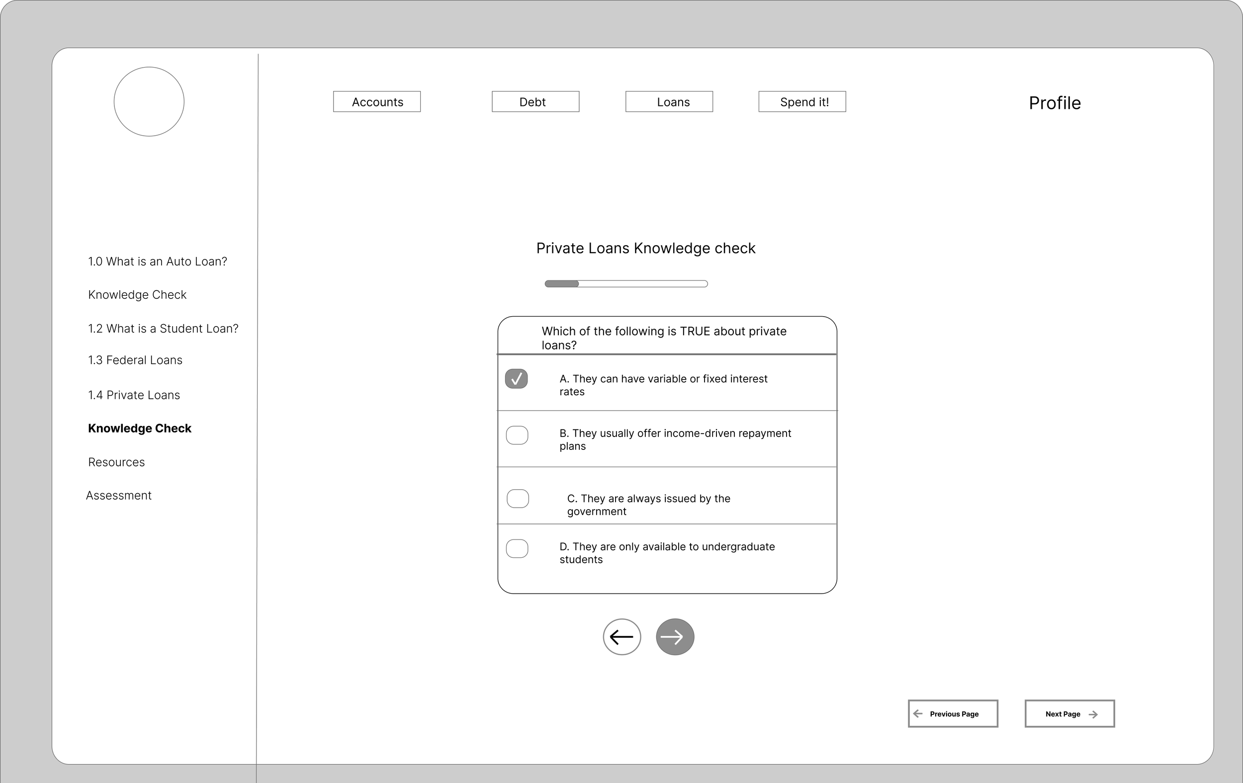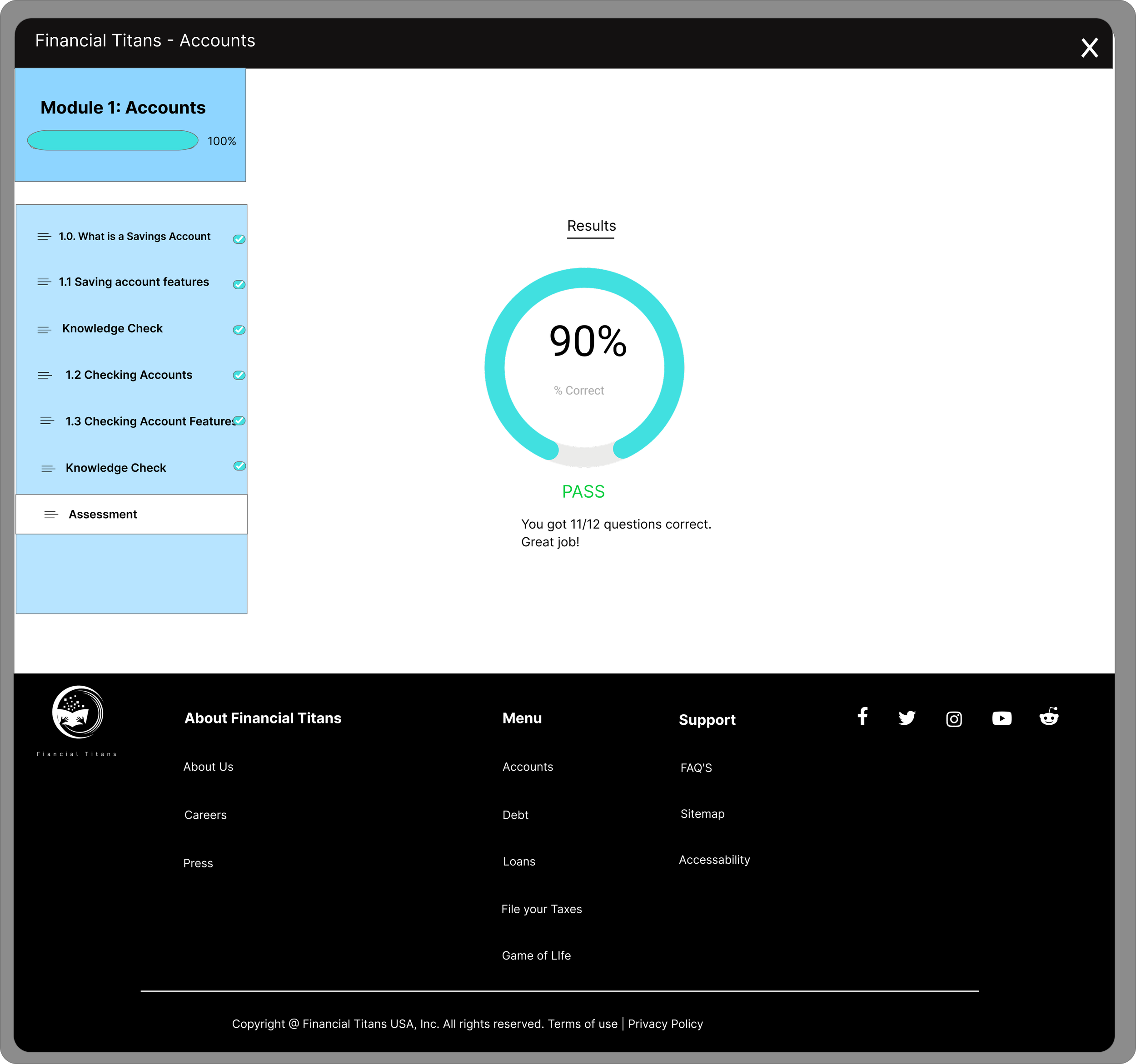 The website provides young adults with the ability to take multiple modules and learn key financial terms through knowledge checks and quizzes.
