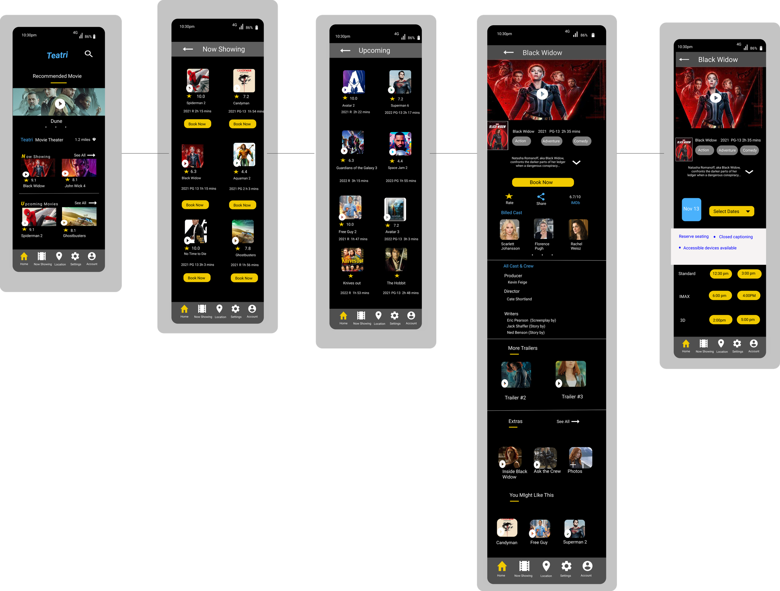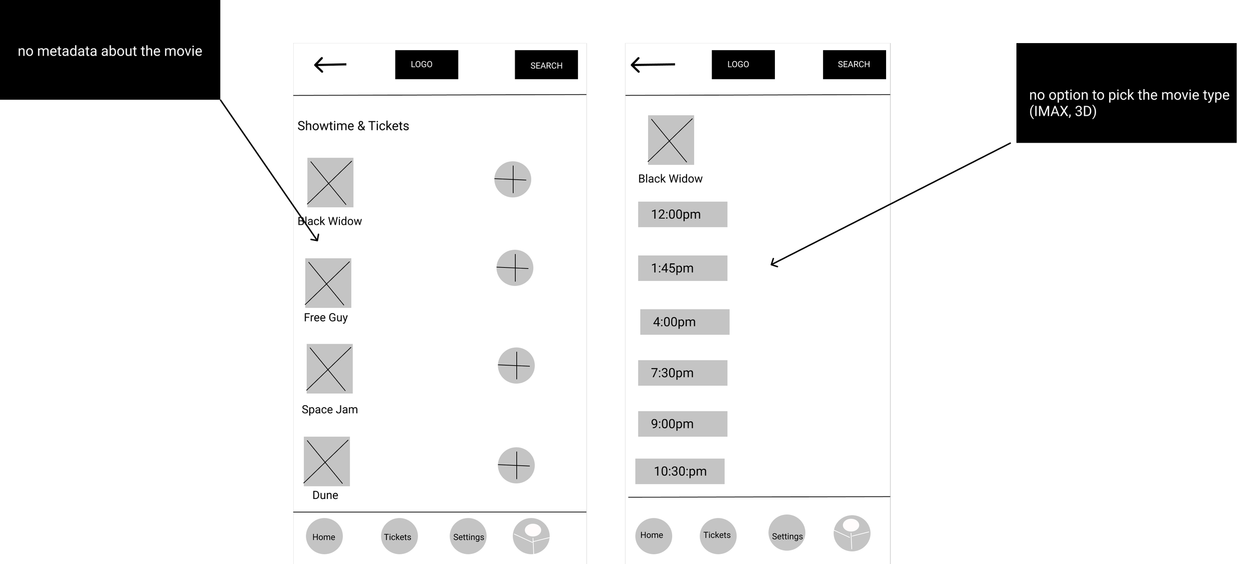 We would build out the ticket buying process which would include: choosing your seat, imputing your credit card information buying the ticket. We would also include creating a loyalty rewards section so you could rack up and redeem points if you were a loyal custome
