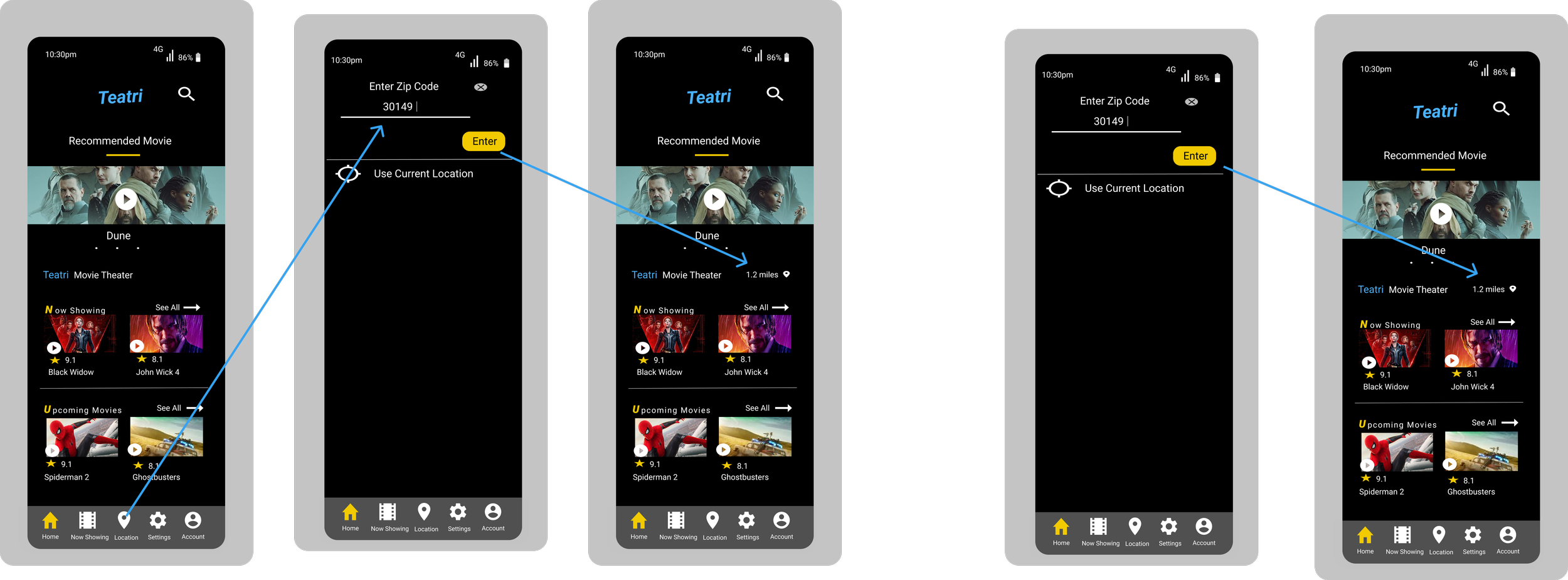 In order for people to find movie theaters closest to you regardless of location in rome, we need to enter your zip code to be able to find nearest theater. You had to click on “location” to enter your zip code. We changed it so now when you log in you have to enter your Zip code first before seeing the home screen